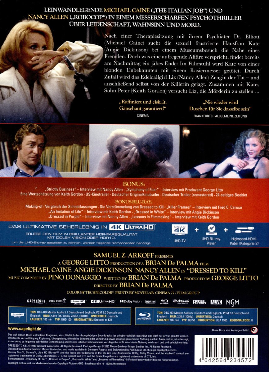 Efter en terapisession med sin psykiater Dr. Elliott söker den sexuellt frustrerade hemmafrun Kate närhet hos en främling under ett museibesök. Men det som lovar att bli en spännande affär får ett abrupt slut redan på eftermiddagen: I hissen mördas Kate av en okänd blond kvinna med en rakbladskniv. Av en slump blir den exklusiva callgirlen Liz vittne till brottet – och jagas sedan själv av mördaren. Tillsammans med Kates son Peter försöker Liz fånga mördaren ...